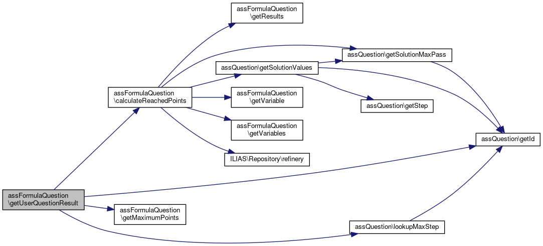 Here is the caller graph for this function:| assFormulaQuestion::getUserQuestionResult | ( | int | $active_id, |