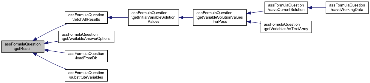 Here is the call graph for this function:| assFormulaQuestion::getVariableSolutionValuesForPass | ( | int | $active_id, |