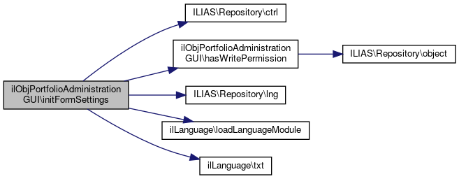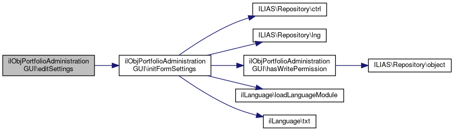 Here is the call graph for this function:| ilObjPortfolioAdministrationGUI::editSettings | ( | $a_form = null | ) |