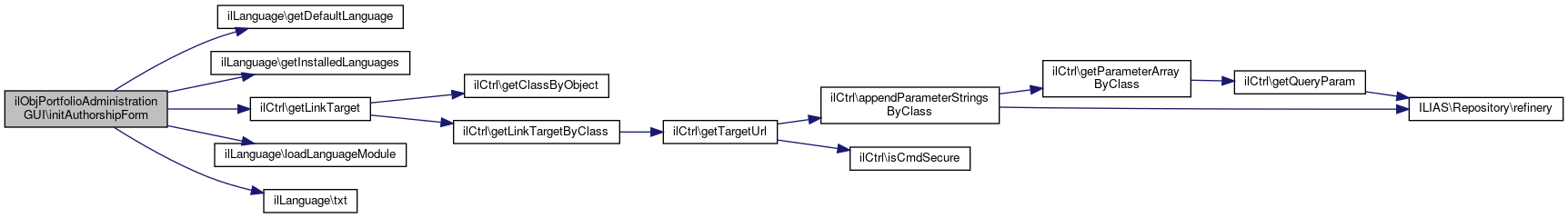 Here is the caller graph for this function:| ilObjPortfolioAdministrationGUI::initAuthorshipForm | ( | ) |
