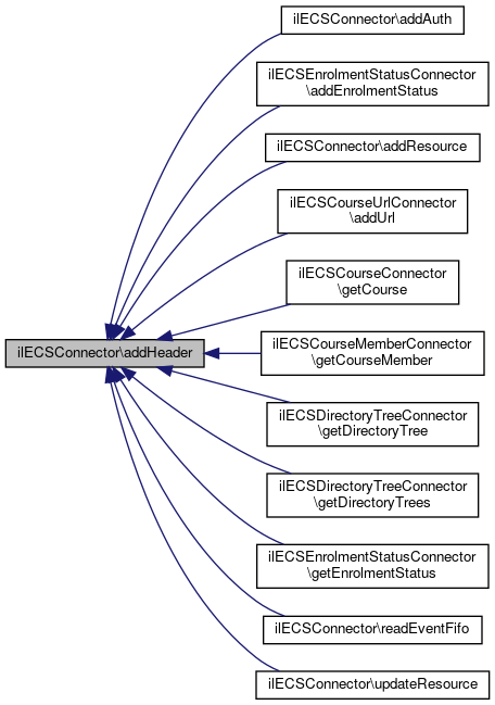 Here is the call graph for this function:| ilECSConnector::addHeader | ( | string | $a_name, |