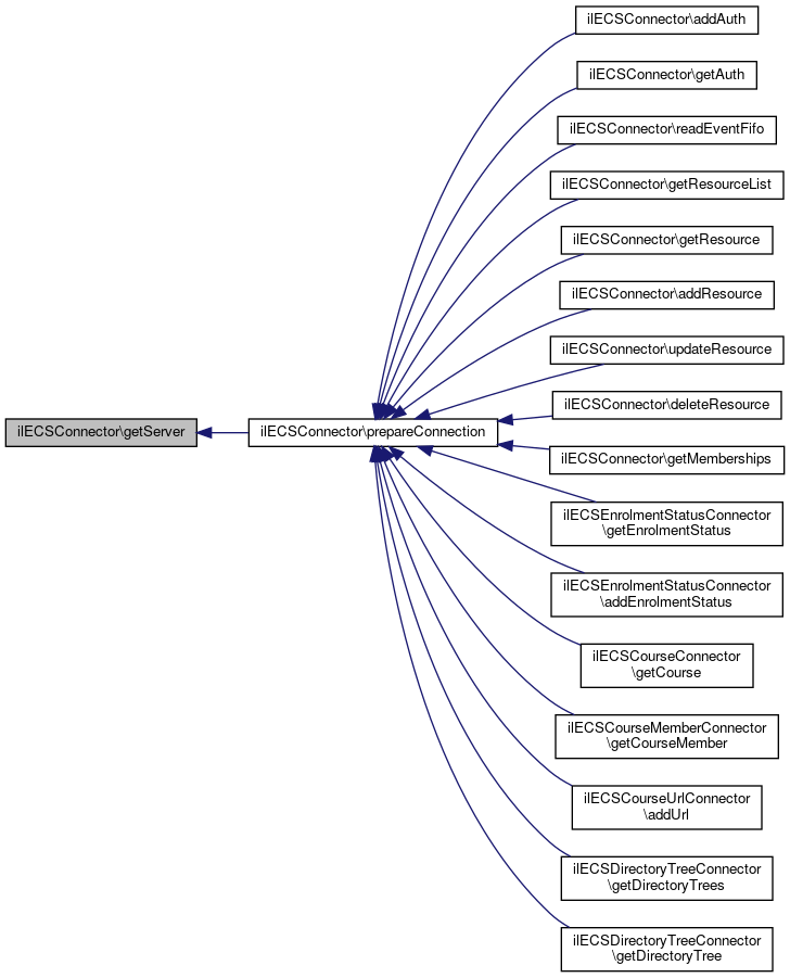 Here is the call graph for this function:| ilECSConnector::getServer | ( | ) |