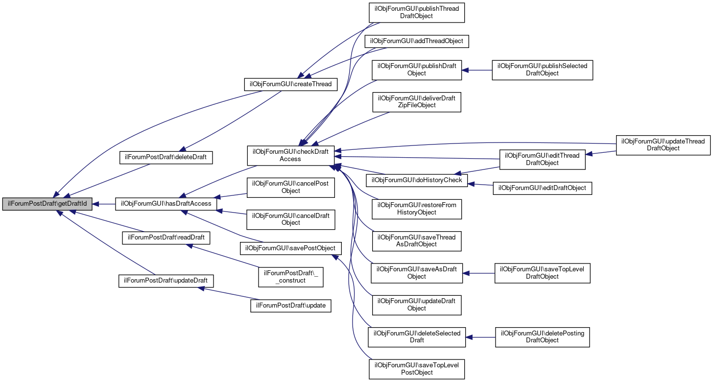 Here is the call graph for this function:| ilForumPostDraft::getDraftId | ( | ) |