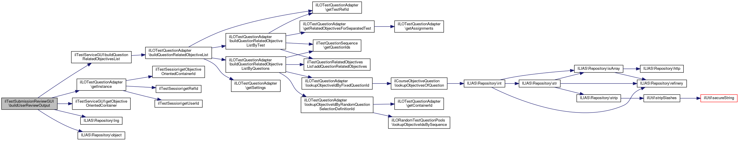 References buildToolbar(), buildUserReviewOutput(), ILIAS\Repository\ctrl(), getContentBlockName(), ILIAS\Test\Presentation\WorkingTime\getMessageBox(), ilTestServiceGUI\getObject(), ILIAS\Repository\lng(), ilObjTest\lookupExamId(), ILIAS\Repository\object(), ilTestPlayerCommands\REDIRECT_AFTER_QUESTION_LIST, and ilTestPlayerLayoutProvider\TEST_PLAYER_VIEW_TITLE.