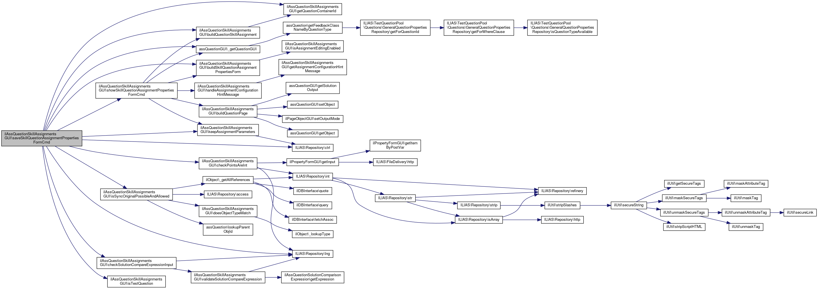 References assQuestionGUI\_getQuestionGUI(), buildQuestionSkillAssignment(), buildSkillQuestionAssignmentPropertiesForm(), checkPointsAreInt(), checkSolutionCompareExpressionInput(), ILIAS\Repository\ctrl(), ilAssQuestionSkillAssignment\EVAL_MODE_BY_QUESTION_RESULT, getQuestionContainerId(), isSyncOriginalPossibleAndAllowed(), isTestQuestion(), keepAssignmentParameters(), ILIAS\Repository\lng(), and showSkillQuestionAssignmentPropertiesFormCmd().