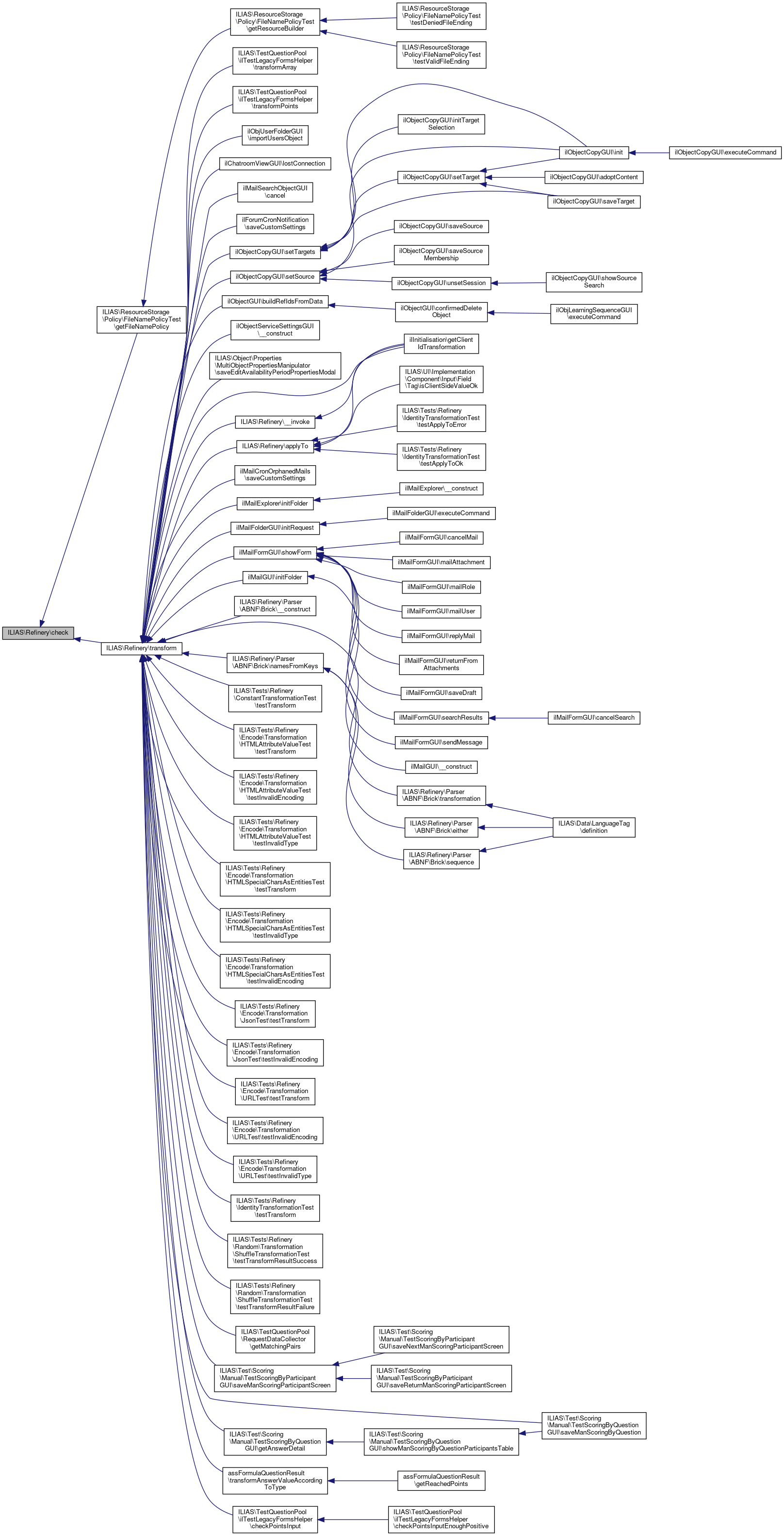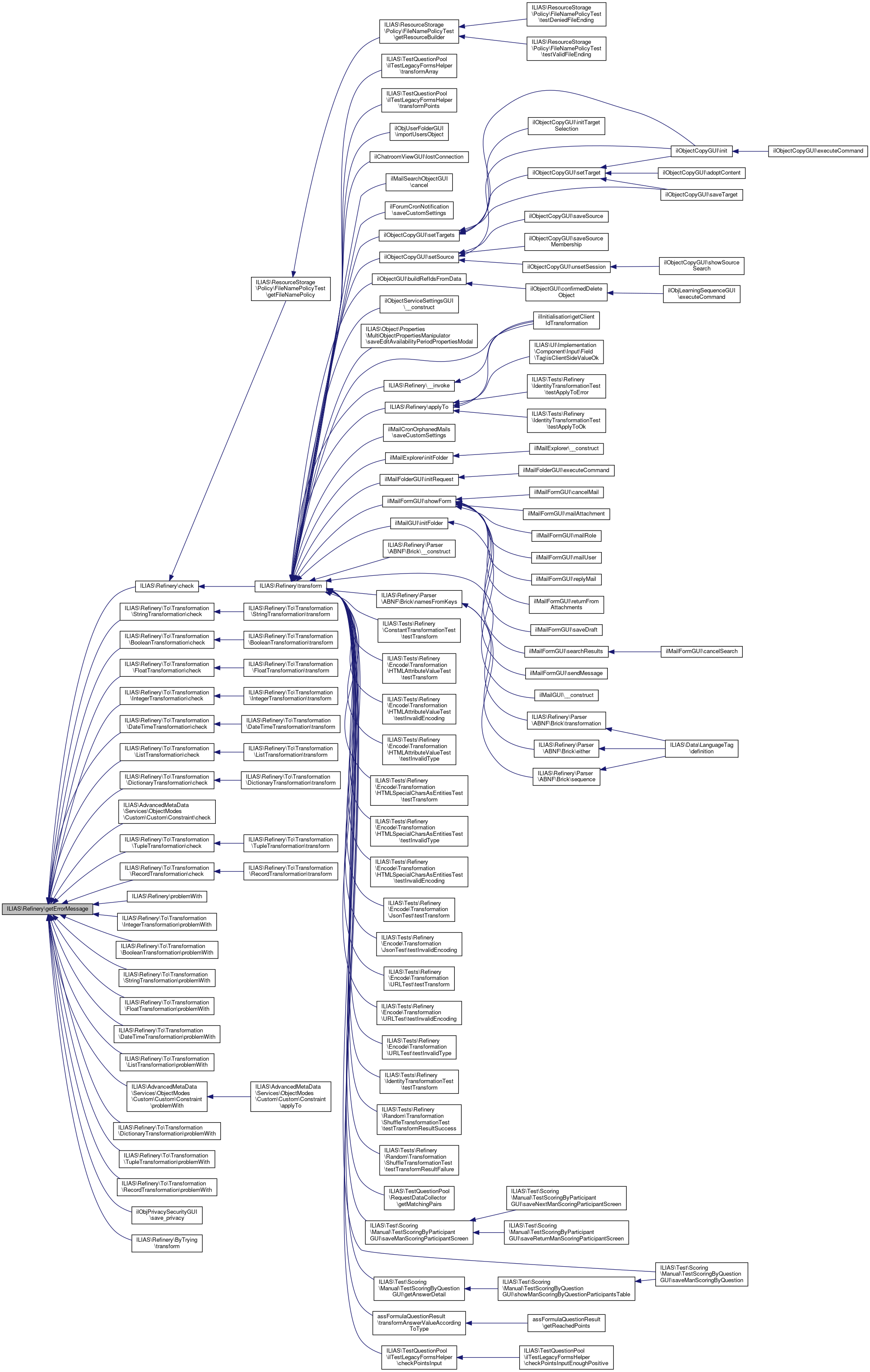 Referenced by ILIAS\Refinery\Parser\ABNF\Brick\__construct(), ilObjectServiceSettingsGUI\__construct(), ILIAS\Refinery\__invoke(), ILIAS\Refinery\applyTo(), ilObjectGUI\buildRefIdsFromData(), ilMailSearchObjectGUI\cancel(), ILIAS\TestQuestionPool\ilTestLegacyFormsHelper\checkPointsInput(), ILIAS\Test\Scoring\Manual\TestScoringByQuestionGUI\getAnswerDetail(), ilInitialisation\getClientIdTransformation(), ILIAS\TestQuestionPool\RequestDataCollector\getMatchingPairs(), ilObjUserFolderGUI\importUsersObject(), ilMailExplorer\initFolder(), ilMailGUI\initFolder(), ilMailFolderGUI\initRequest(), ilChatroomViewGUI\lostConnection(), ILIAS\Refinery\Parser\ABNF\Brick\namesFromKeys(), ilMailCronOrphanedMails\saveCustomSettings(), ilForumCronNotification\saveCustomSettings(), ILIAS\Object\Properties\MultiObjectPropertiesManipulator\saveEditAvailabilityPeriodPropertiesModal(), ILIAS\Test\Scoring\Manual\TestScoringByQuestionGUI\saveManScoringByQuestion(), ILIAS\Test\Scoring\Manual\TestScoringByParticipantGUI\saveManScoringParticipantScreen(), ilObjectCopyGUI\setSource(), ilObjectCopyGUI\setTargets(), ilMailFormGUI\showForm(), ILIAS\Tests\Refinery\Encode\Transformation\URLTest\testInvalidEncoding(), ILIAS\Tests\Refinery\Encode\Transformation\JsonTest\testInvalidEncoding(), ILIAS\Tests\Refinery\Encode\Transformation\HTMLAttributeValueTest\testInvalidEncoding(), ILIAS\Tests\Refinery\Encode\Transformation\HTMLSpecialCharsAsEntitiesTest\testInvalidEncoding(), ILIAS\Tests\Refinery\Encode\Transformation\HTMLSpecialCharsAsEntitiesTest\testInvalidType(), ILIAS\Tests\Refinery\Encode\Transformation\URLTest\testInvalidType(), ILIAS\Tests\Refinery\Encode\Transformation\HTMLAttributeValueTest\testInvalidType(), ILIAS\Tests\Refinery\ConstantTransformationTest\testTransform(), ILIAS\Tests\Refinery\IdentityTransformationTest\testTransform(), ILIAS\Tests\Refinery\Encode\Transformation\HTMLSpecialCharsAsEntitiesTest\testTransform(), ILIAS\Tests\Refinery\Encode\Transformation\URLTest\testTransform(), ILIAS\Tests\Refinery\Encode\Transformation\JsonTest\testTransform(), ILIAS\Tests\Refinery\Encode\Transformation\HTMLAttributeValueTest\testTransform(), ILIAS\Tests\Refinery\Random\Transformation\ShuffleTransformationTest\testTransformResultFailure(), ILIAS\Tests\Refinery\Random\Transformation\ShuffleTransformationTest\testTransformResultSuccess(), assFormulaQuestionResult\transformAnswerValueAccordingToType(), ILIAS\TestQuestionPool\ilTestLegacyFormsHelper\transformArray(), ILIAS\Refinery\Parser\ABNF\Brick\transformation(), and ILIAS\TestQuestionPool\ilTestLegacyFormsHelper\transformPoints().