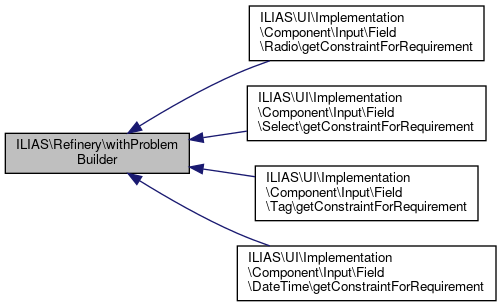 Referenced by ILIAS\UI\Implementation\Component\Input\Field\Radio\getConstraintForRequirement(), ILIAS\UI\Implementation\Component\Input\Field\Select\getConstraintForRequirement(), ILIAS\UI\Implementation\Component\Input\Field\Tag\getConstraintForRequirement(), and ILIAS\UI\Implementation\Component\Input\Field\DateTime\getConstraintForRequirement().