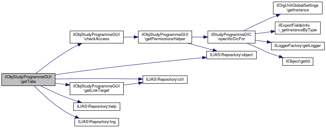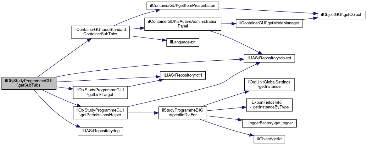 Here is the caller graph for this function:| ilObjStudyProgrammeGUI::getSubTabs | ( | string | $parent_tab | ) |