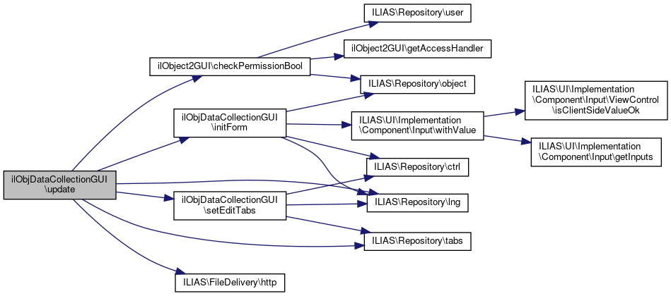 Here is the call graph for this function:| ilObjDataCollectionGUI::update | ( | ) |