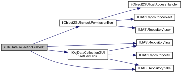 Here is the call graph for this function:| ilObjDataCollectionGUI::edit | ( | ) |