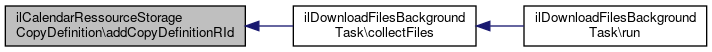 Here is the caller graph for this function:| ilCalendarRessourceStorageCopyDefinition::addCopyDefinitionRId | ( | string | $a_ressource_id, |