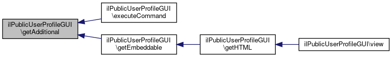 Here is the call graph for this function:| ilPublicUserProfileGUI::getAdditional | ( | ) |