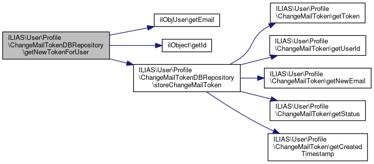 Here is the call graph for this function:| ILIAS\User\Profile\ChangeMailTokenDBRepository::getNewTokenForUser | ( | \ilObjUser | $user, |
