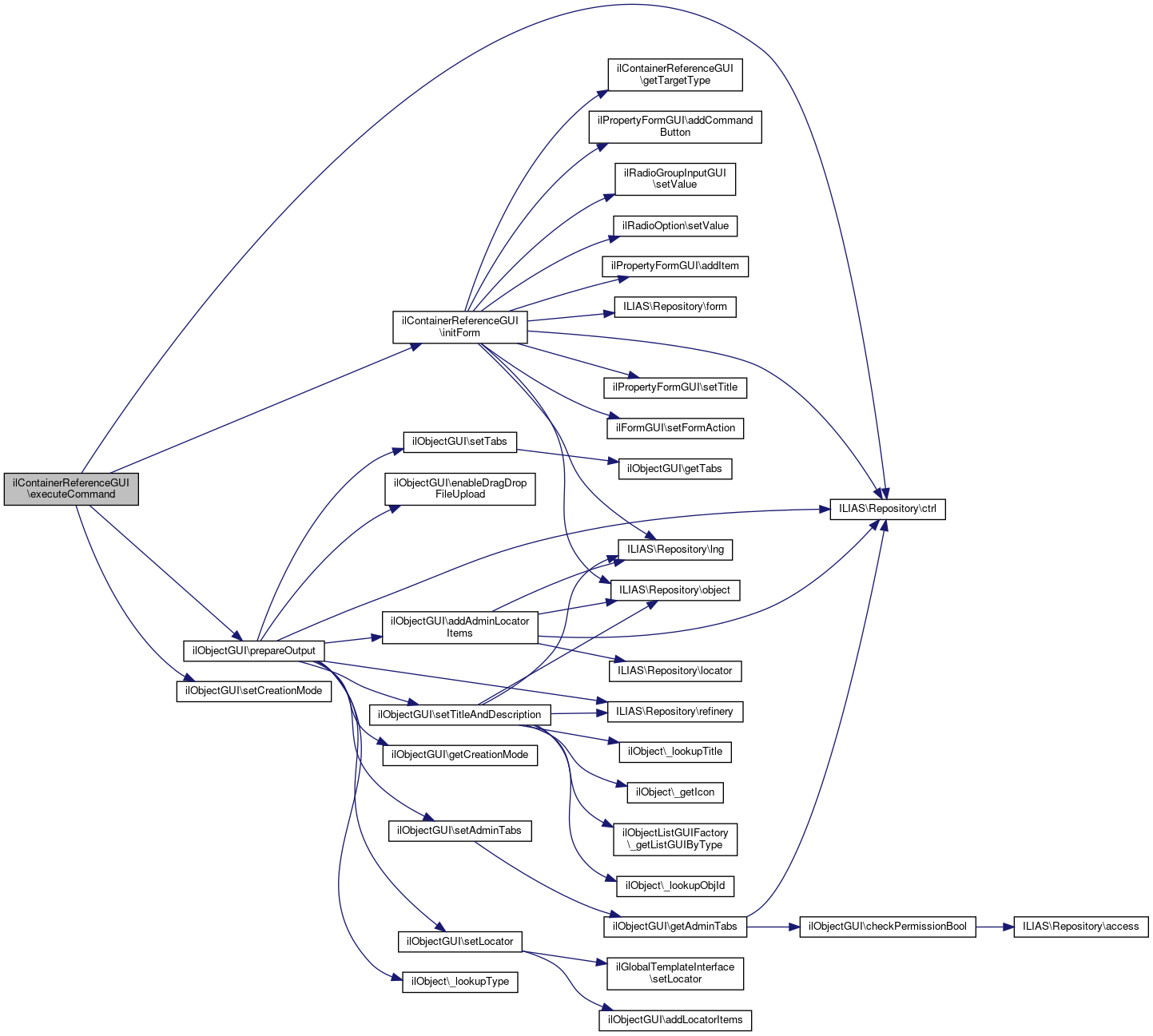Here is the call graph for this function:| ilContainerReferenceGUI::executeCommand | ( | ) |