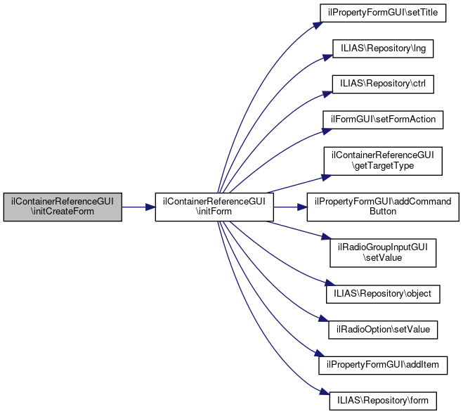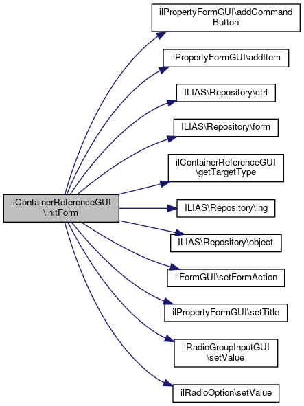 References $form, ilPropertyFormGUI\addCommandButton(), ilPropertyFormGUI\addItem(), ILIAS\Repository\ctrl(), ILIAS\Repository\form(), getTargetType(), ILIAS\Repository\lng(), ILIAS\Repository\object(), ilFormGUI\setFormAction(), ilPropertyFormGUI\setTitle(), ilRadioGroupInputGUI\setValue(), ilRadioOption\setValue(), ilObject\TITLE_LENGTH, ilContainerReference\TITLE_TYPE_CUSTOM, and ilContainerReference\TITLE_TYPE_REUSE.