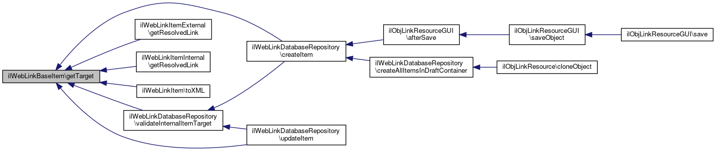 Referenced by ilWebLinkDatabaseRepository\createItem(), ilWebLinkItemExternal\getResolvedLink(), ilWebLinkItemInternal\getResolvedLink(), ilWebLinkItem\toXML(), ilWebLinkDatabaseRepository\updateItem(), and ilWebLinkDatabaseRepository\validateInternalItemTarget().