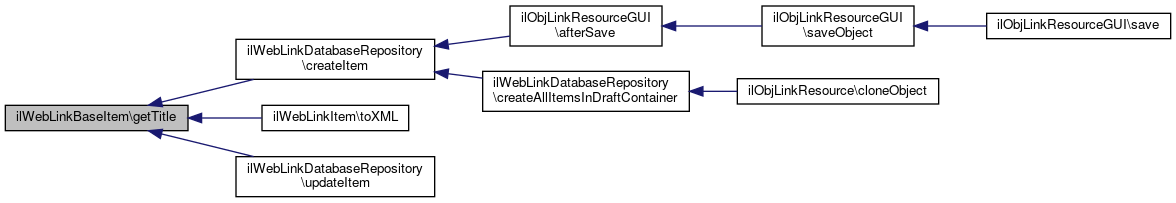 Here is the caller graph for this function:| ilWebLinkBaseItem::getTitle | ( | ) |