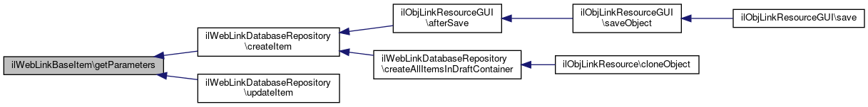 Here is the caller graph for this function:| ilWebLinkBaseItem::getParameters | ( | ) |