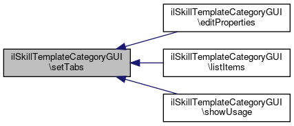 Here is the call graph for this function:| ilSkillTemplateCategoryGUI::setTabs | ( | string | $a_tab | ) |