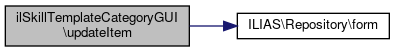 Here is the call graph for this function:| ilSkillTemplateCategoryGUI::updateItem | ( | ) |