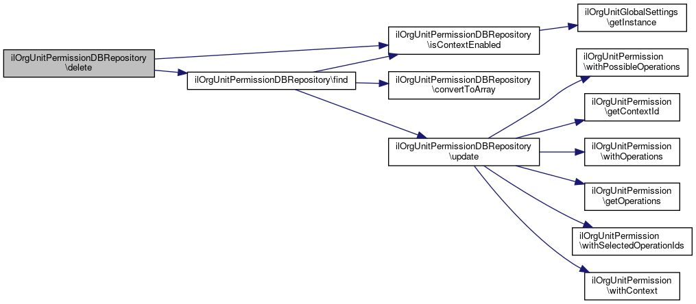 Here is the caller graph for this function:| ilOrgUnitPermissionDBRepository::delete | ( | int | $parent_id, |
