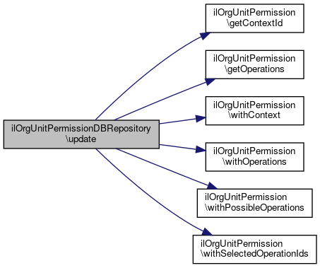 Here is the caller graph for this function:| ilOrgUnitPermissionDBRepository::update | ( | ilOrgUnitPermission | $permission | ) |