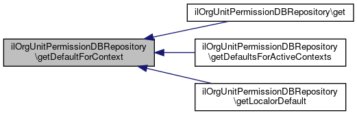 Here is the call graph for this function:| ilOrgUnitPermissionDBRepository::getDefaultForContext | ( | string | $context_name, |
