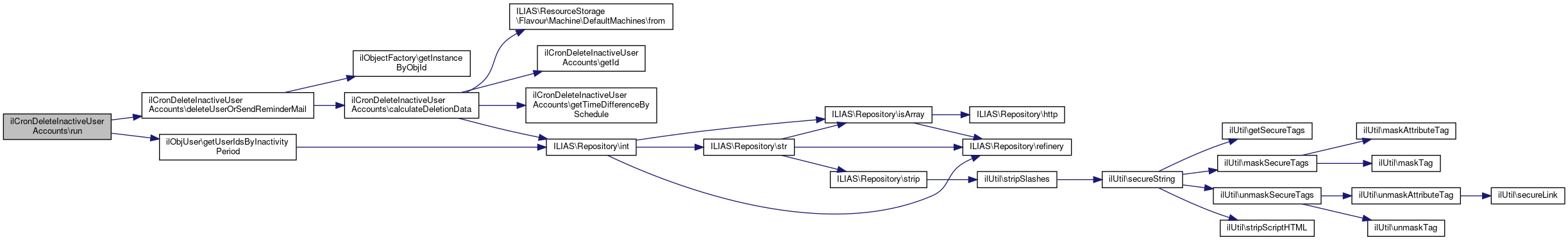 Here is the call graph for this function:| ilCronDeleteInactiveUserAccounts::run | ( | ) |