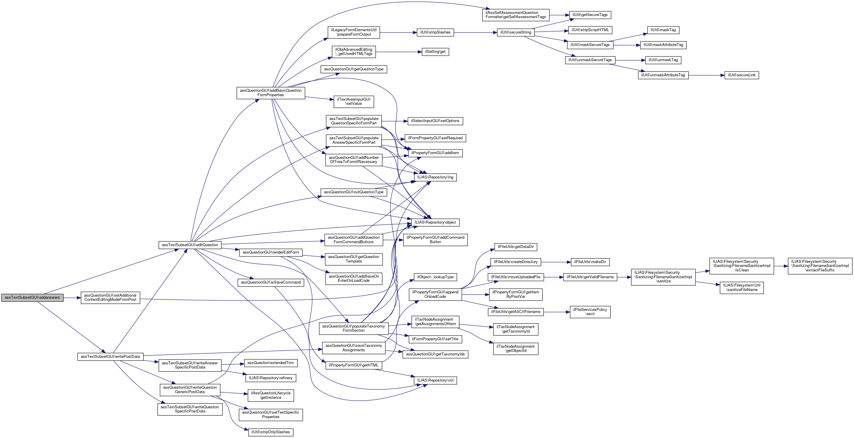 Here is the call graph for this function:| assTextSubsetGUI::addanswers | ( | ) |