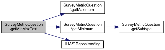 Here is the caller graph for this function:| SurveyMetricQuestion::getMinMaxText | ( | ) |