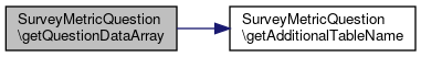 Here is the call graph for this function:| SurveyMetricQuestion::getAdditionalTableName | ( | ) |