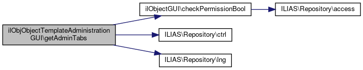 Here is the call graph for this function:| ilObjObjectTemplateAdministrationGUI::getAdminTabs | ( | ) |