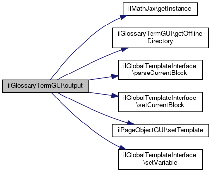 Here is the call graph for this function:| ilGlossaryTermGUI::output | ( | bool | $a_offline = false,  |