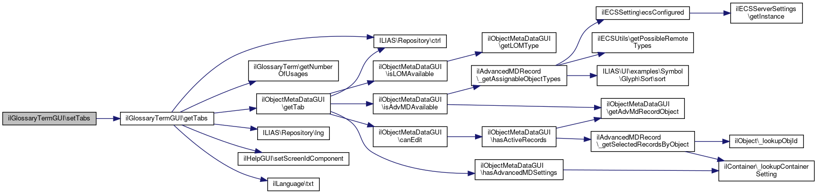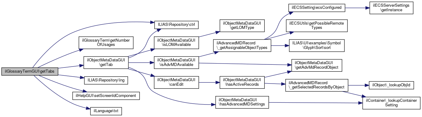 Here is the call graph for this function:| ilGlossaryTermGUI::getTabs | ( | ) |