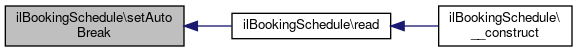 Here is the caller graph for this function:| ilBookingSchedule::setAutoBreak | ( | int | $a_break | ) |