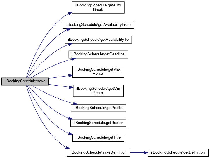 Here is the caller graph for this function:| ilBookingSchedule::save | ( | ) |