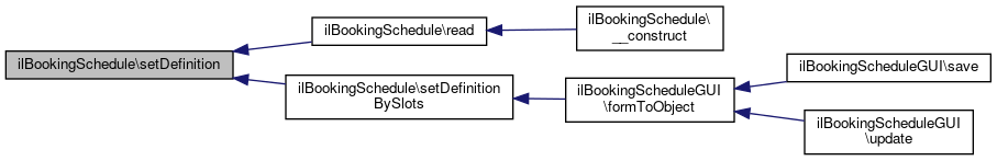 Here is the caller graph for this function:| ilBookingSchedule::setDefinition | ( | array | $a_definition | ) |