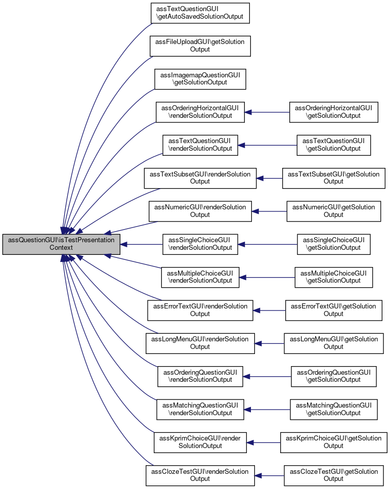 | renderSolutionOutput (mixed $user_solutions, int $active_id, ?int $pass, bool $graphical_output=false, bool $result_output=false, bool $show_question_only=true, bool $show_feedback=false, bool $show_correct_solution=false, bool $show_manual_scoring=false, bool $show_question_text=true, bool $show_autosave_title=false, bool $show_inline_feedback=false,) | |