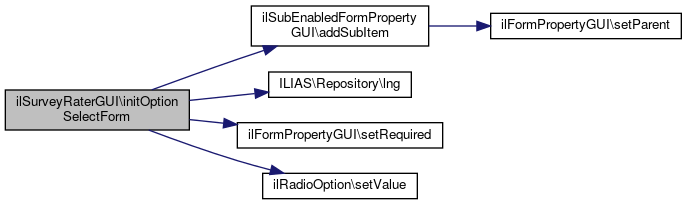 Here is the caller graph for this function:| ilSurveyRaterGUI::initOptionSelectForm | ( | ) |
