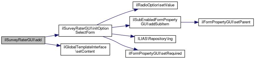Here is the call graph for this function:| ilSurveyRaterGUI::addRater | ( | ilPropertyFormGUI | $form | ) |