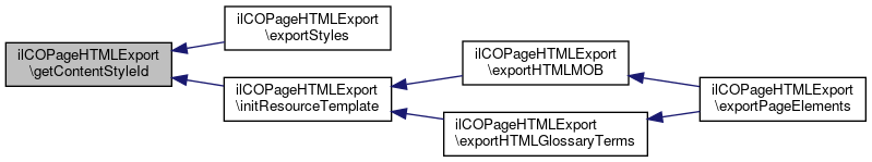 Here is the call graph for this function:| ilCOPageHTMLExport::getContentStyleId | ( | ) |