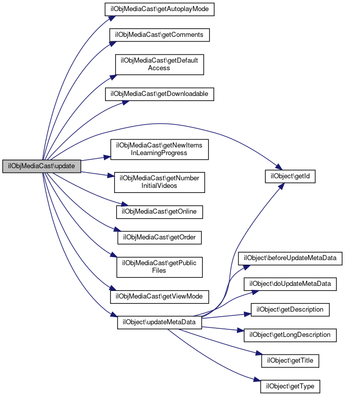 Here is the caller graph for this function:| ilObjMediaCast::update | ( | ) |