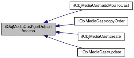 Here is the caller graph for this function:| ilObjMediaCast::setDefaultAccess | ( | int | $value | ) |