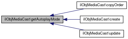 Here is the caller graph for this function:| ilObjMediaCast::setAutoplayMode | ( | int | $a_val | ) |
