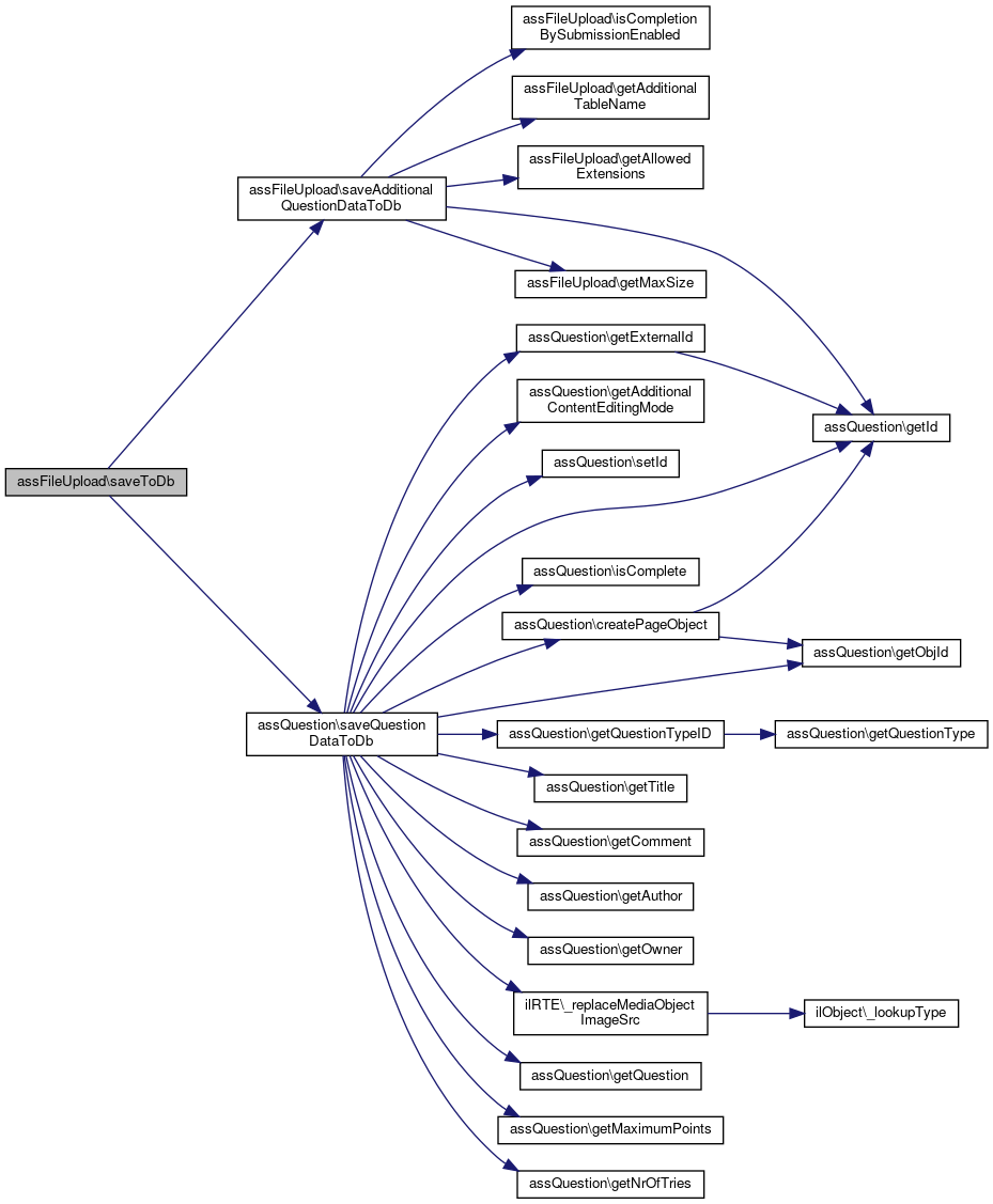 Here is the call graph for this function:| assFileUpload::saveToDb | ( | ?int | $original_id = null | ) |