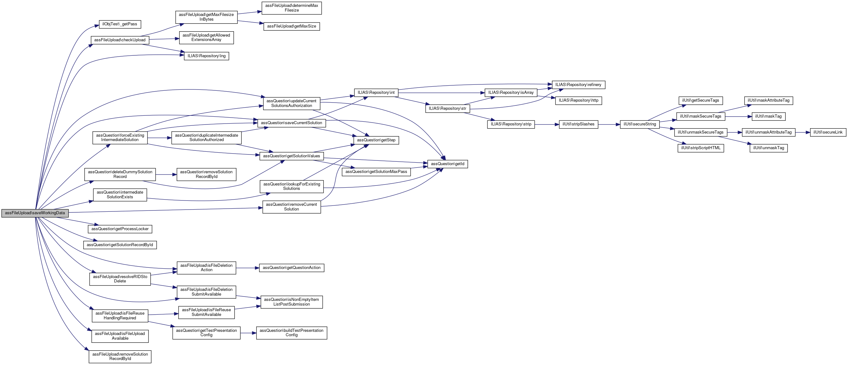Here is the call graph for this function:| assFileUpload::saveWorkingData | ( | int | $active_id, |