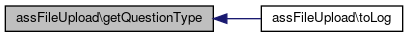 Here is the call graph for this function:| assFileUpload::getQuestionType | ( | ) |