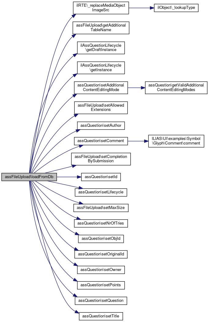 Here is the caller graph for this function:| assFileUpload::loadFromDb | ( | int | $question_id | ) |