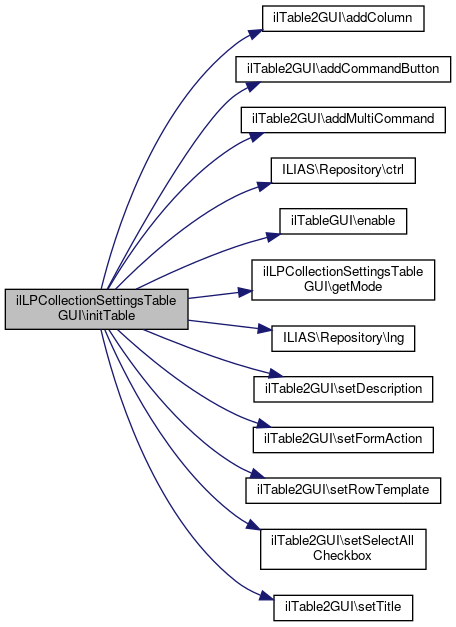 References ilTable2GUI\addColumn(), ilTable2GUI\addCommandButton(), ilTable2GUI\addMultiCommand(), ILIAS\Repository\ctrl(), ilTableGUI\enable(), getMode(), ILIAS\Repository\lng(), ilLPObjSettings\LP_MODE_COLLECTION, ilLPObjSettings\LP_MODE_COLLECTION_MANUAL, ilLPObjSettings\LP_MODE_COLLECTION_MOBS, ilLPObjSettings\LP_MODE_COLLECTION_TLT, ilLPObjSettings\LP_MODE_MANUAL_BY_TUTOR, ilLPObjSettings\LP_MODE_SCORM, ilTable2GUI\setDescription(), ilTable2GUI\setFormAction(), ilTable2GUI\setRowTemplate(), ilTable2GUI\setSelectAllCheckbox(), and ilTable2GUI\setTitle().