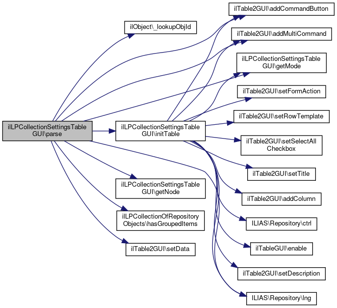 Here is the caller graph for this function:| ilLPCollectionSettingsTableGUI::parse | ( | ilLPCollection | $a_collection | ) |